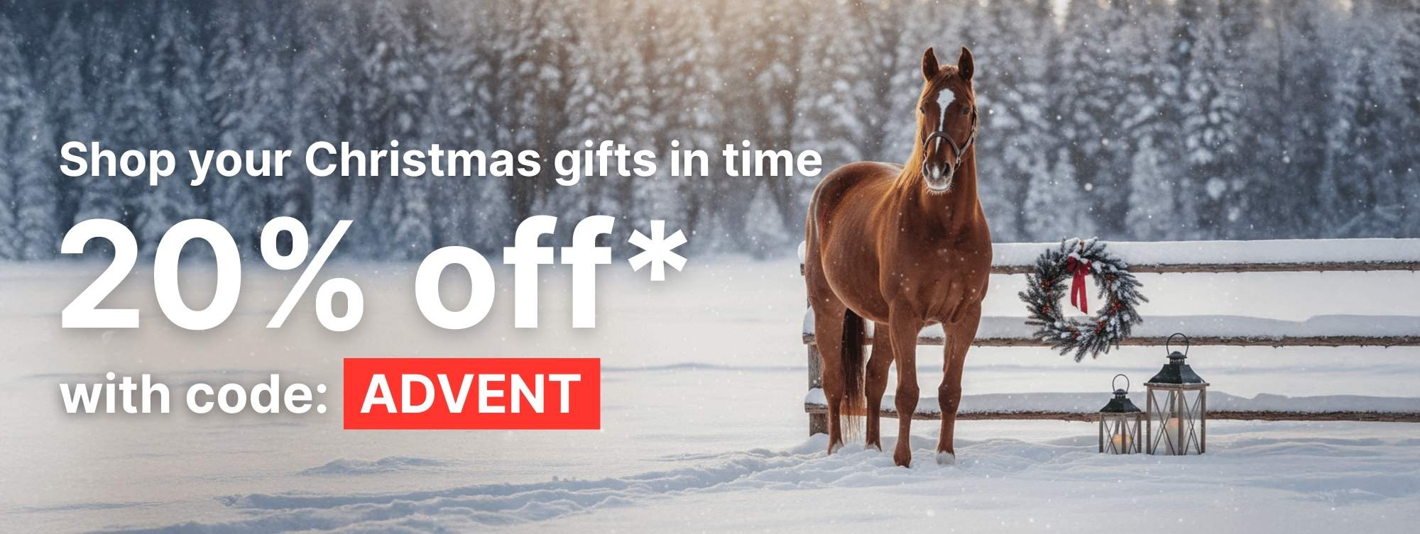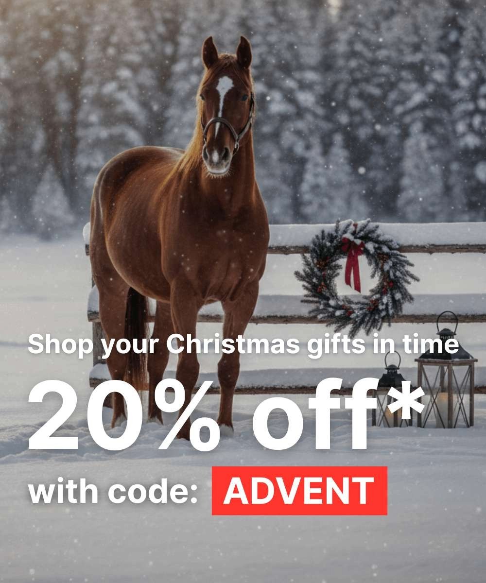 *Valid until 08-12-2025. Cannot be combined with other discount codes, discounted products and does not apply to shipping costs. Following brands are excluded: Kentucky Horsewear, Grooming Deluxe by Kentucky, Kingsland, Pikeur, Eskadron, Racesafe, Uvex, Boss Equestrian, HKM, Horseware, Schockemöhle Sports, Aesculap, Samshield, Dyon, Birth Alarm, Ariat, Freejump, EGO7 & KEP Italia.