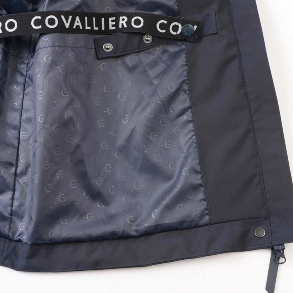The Covalliero raincoat in navy blue is designed to keep you dry and comfortable in all weather conditions. With a water resistance equivalent to a water column of 10,000 mm and taped seams, it withstands heavy rain, while the high breathability of 3,000 g/m²/24 h ensures a pleasant body climate even during movement. The removable hood can be attached with a button for riding, and a drawstring adjusts the fit. For added comfort, the coat features integrated back ventilation with a logo that improves air circulation.