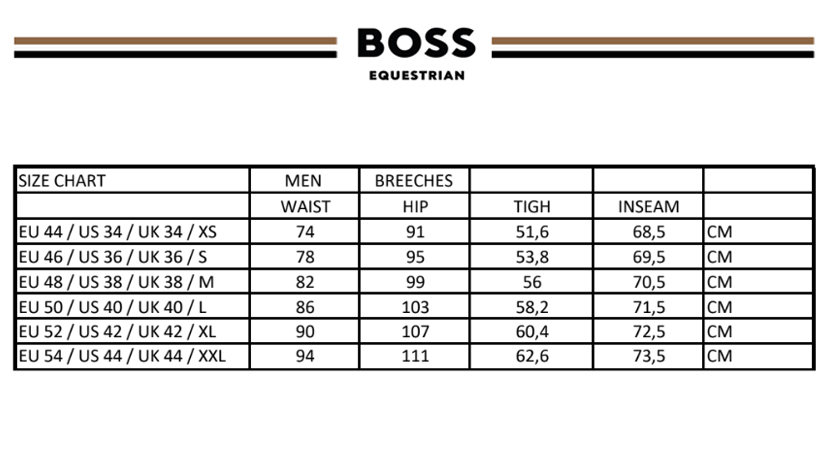 The BOSS Equestrian Men's Breeches Jim Full Grip in white are designed for optimal comfort and performance. These full-seat breeches are made from breathable Power Sport fabric with 4-way stretch, making them perfect for long rides. The tailored waistband and zip fly provide a secure fit, while the silicone logo badge on the left thigh and signature BOSS stripe belt loop add a sleek look. The soft jersey leg ends ensure a comfortable fit around the ankles.