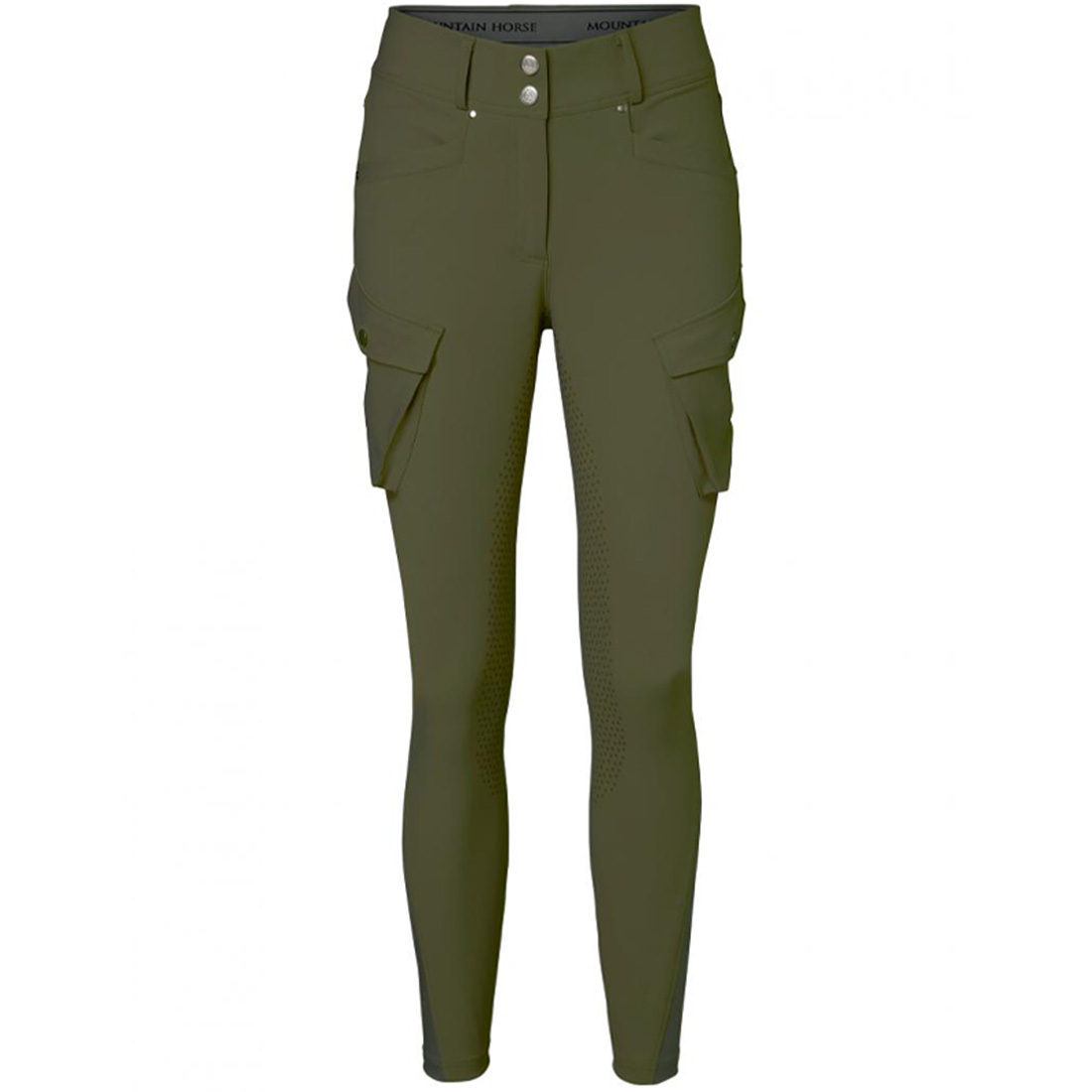 The Mountain Horse Estelle Cargo Full Grip riding breeches are super comfortable with practical cargo pockets and full seat with MH grip. Made from high-quality breathable fabric, they resist dirt and liquid. These breeches feature a high waist and belt loops along the waistband for a secure fit. The YKK front zipper and soft logo elastic inside the waistband add to the comfort. Cargo pockets come with MH snap closure, and the flexible bottom leg opening allows for extra movement.