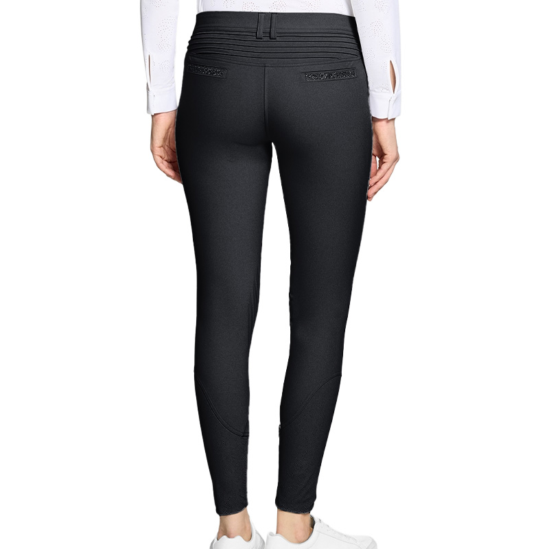 Samshield Adele knee grip breeches feature a mid-rise waist and offer a flexible fit with excellent freedom of movement. They are made from a black Italian fabric that is stretchy, breathable, and durable. The material resists pilling and is wrinkle-free, ensuring it maintains its appearance over time.