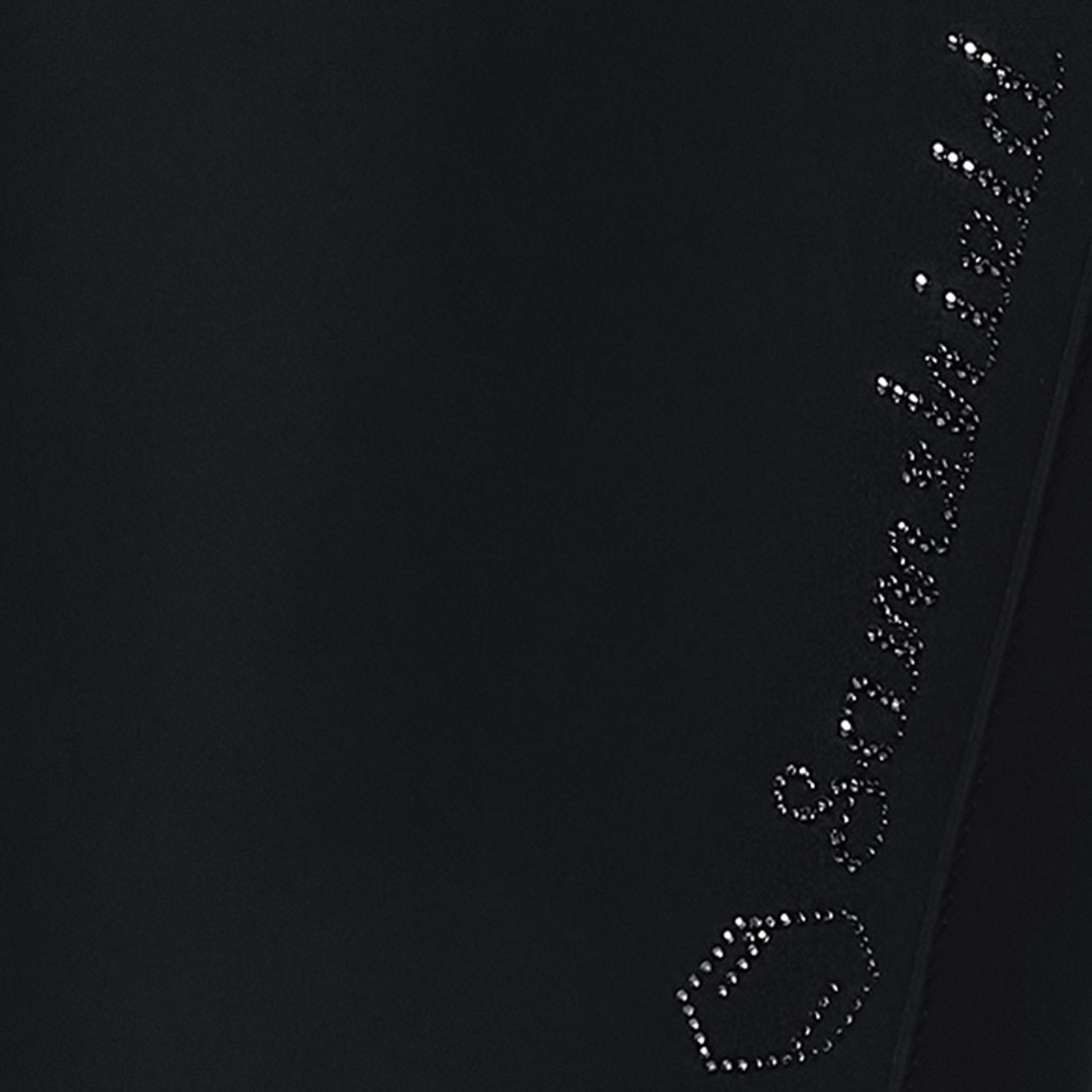 The breeches are decorated with Swarovski crystal fabric details at the belt loops and back pockets, along with pleats at the back. A Swarovski logo is placed on the thigh.
