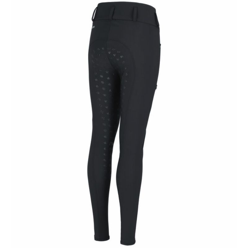 The full seat in GripTec ensures a secure grip in the saddle and a comfortable feel thanks to the material's stretch and the absence of knee seams. The wide waistband in the same material as the tights provides a stable fit, and together with belt loops, combines functionality with a classic design. Large mobile pockets on both sides are practical for storing smaller belongings. Strass details on the pockets and a strass logo at the back give a sleek and modern finish.