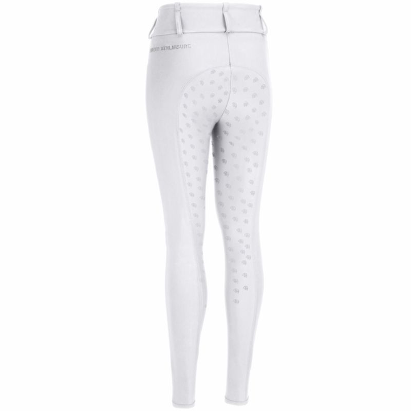 The Pikeur Lilith SD riding tights for children and juniors are designed to provide a comfortable and stable fit in the saddle. These white tights feature a high-waisted design with a slimmer fit and long legs that follow the body's movements, offering excellent freedom of movement while riding. Made from the technical 486 / FlexTech material with 4-way stretch, they offer high comfort, good breathability, and quick-drying properties. The material also includes UV protection, making them ideal for outdoor training.