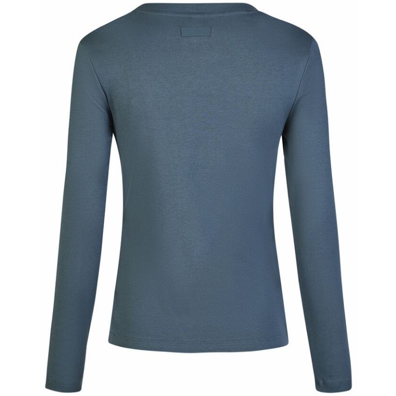 The Eskadron Rib Longsleeve Classic Sports is a green top made from ribbed cotton with a round neckline. It features a close-fitting design and is both soft and stretchy, ensuring comfort. The top is adorned with the Eskadron logo on the front.