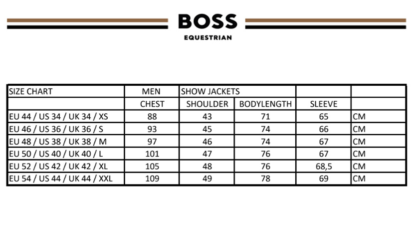 The BOSS Equestrian Men's Show Jacket, model Allen, combines style and functionality for the competition arena. This black jacket is airbag-compatible and features a slim fit for a sleek silhouette. Made from super-elastic material, it offers complete freedom of movement, essential during competitions. The jacket includes BOSS signature details, such as a contrasting logo on the left sleeve, along with practical pockets and a double vent at the back for a sophisticated finish.