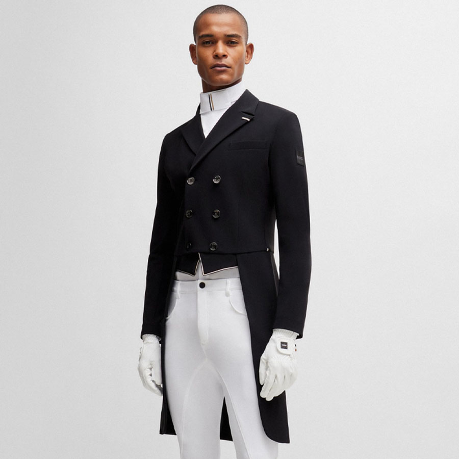 The Mike Tailcoat from BOSS Equestrian is an elegant and functional tailcoat for men, perfect for competitions and shows. The black color offers a classic look, while the optimal fit and high freedom of movement ensure comfort throughout your ride. Designed with BOSS logo buttons in gunmetal, it provides a sun protection factor of 50, making it ideal for outdoor use.