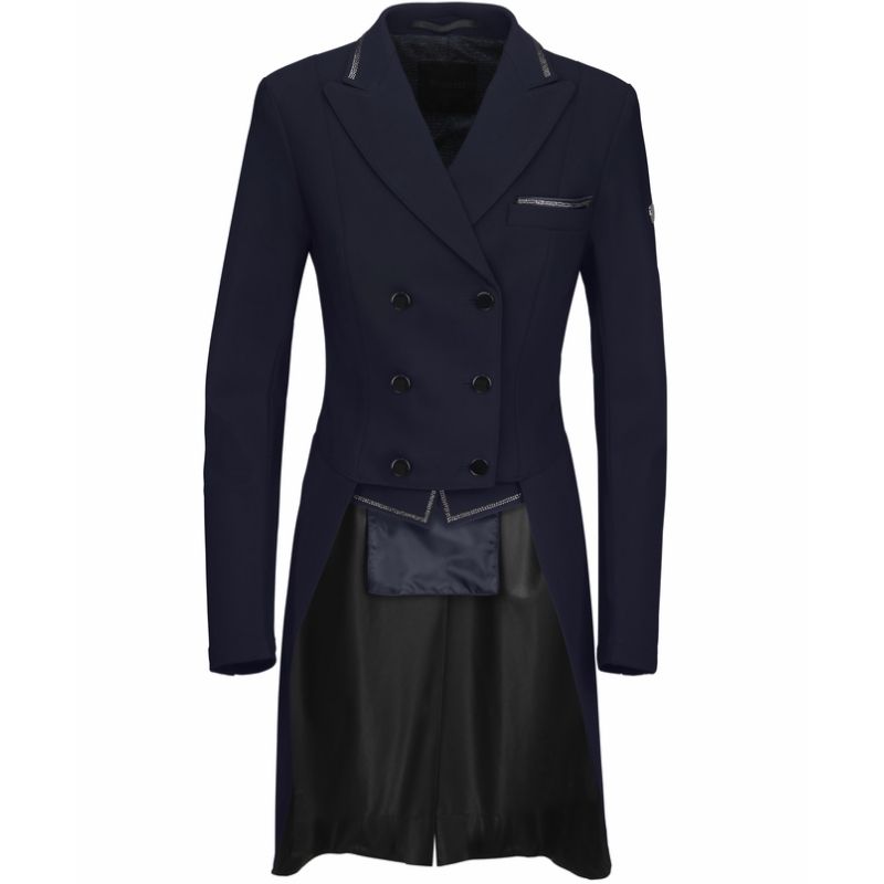 The Pikeur Liliane Dressage Tailcoat blends elegant show-ring style with modern performance technology, making it a standout choice for ambitious dressage riders. Crafted from innovative 4-way stretch Tech-Jersey fabric, this coat offers exceptional freedom of movement while maintaining a firm, structured fit that ensures a secure and flattering silhouette in the saddle. The material is not only highly breathable and moisture-wicking but also provides reliable UV protection, keeping you comfortable and focused during long competition days.