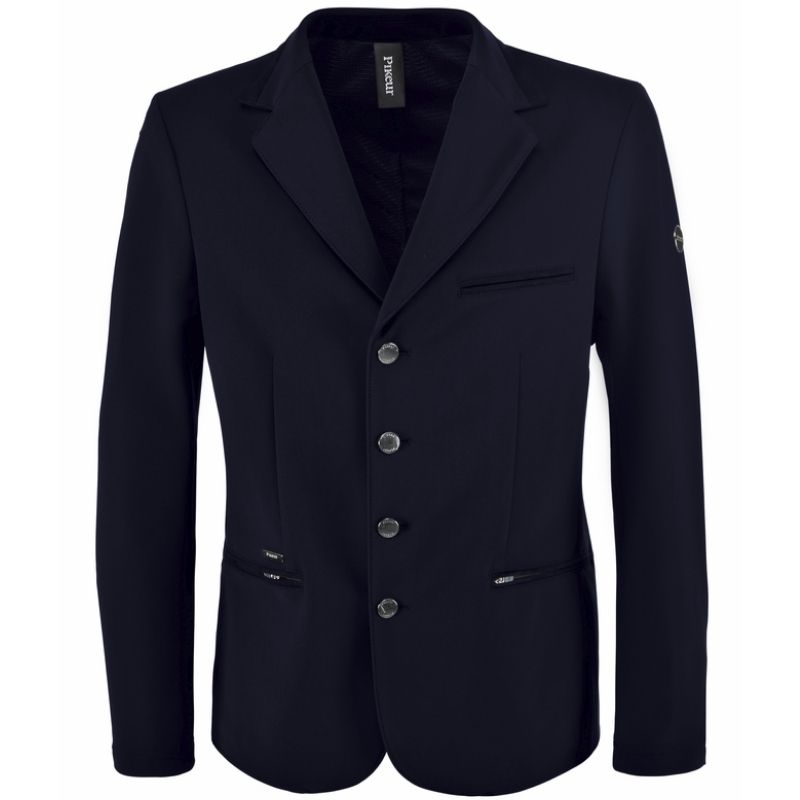 The Pikeur Luis Men's Show Jacket in navy combines a sporty, modern look with functional performance, ideal for riders who value both style and comfort in the arena. Designed with a new, contemporary fit, this jacket offers a sharp silhouette while allowing freedom of movement in the saddle. Ventilation eyelets under the arms provide effective airflow and help manage moisture, ensuring you stay comfortable even during intense rounds.