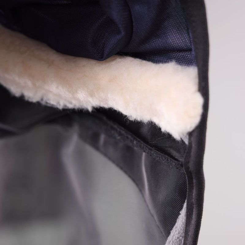The Shires Deluxe Fly Mask with Ears & Nose Fringe in a stylish Bordeaux color is designed to protect sensitive-eyed horses from annoying flies and insects. It features reinforced stays that ensure extra space for the horse's eyes, providing a comfortable fit. Made from fine mesh, the fly mask includes an elasticated poll for optimal comfort. Padded seams on the inside offer a soft feel against the horse's skin, and the nose fringe adds extra protection.