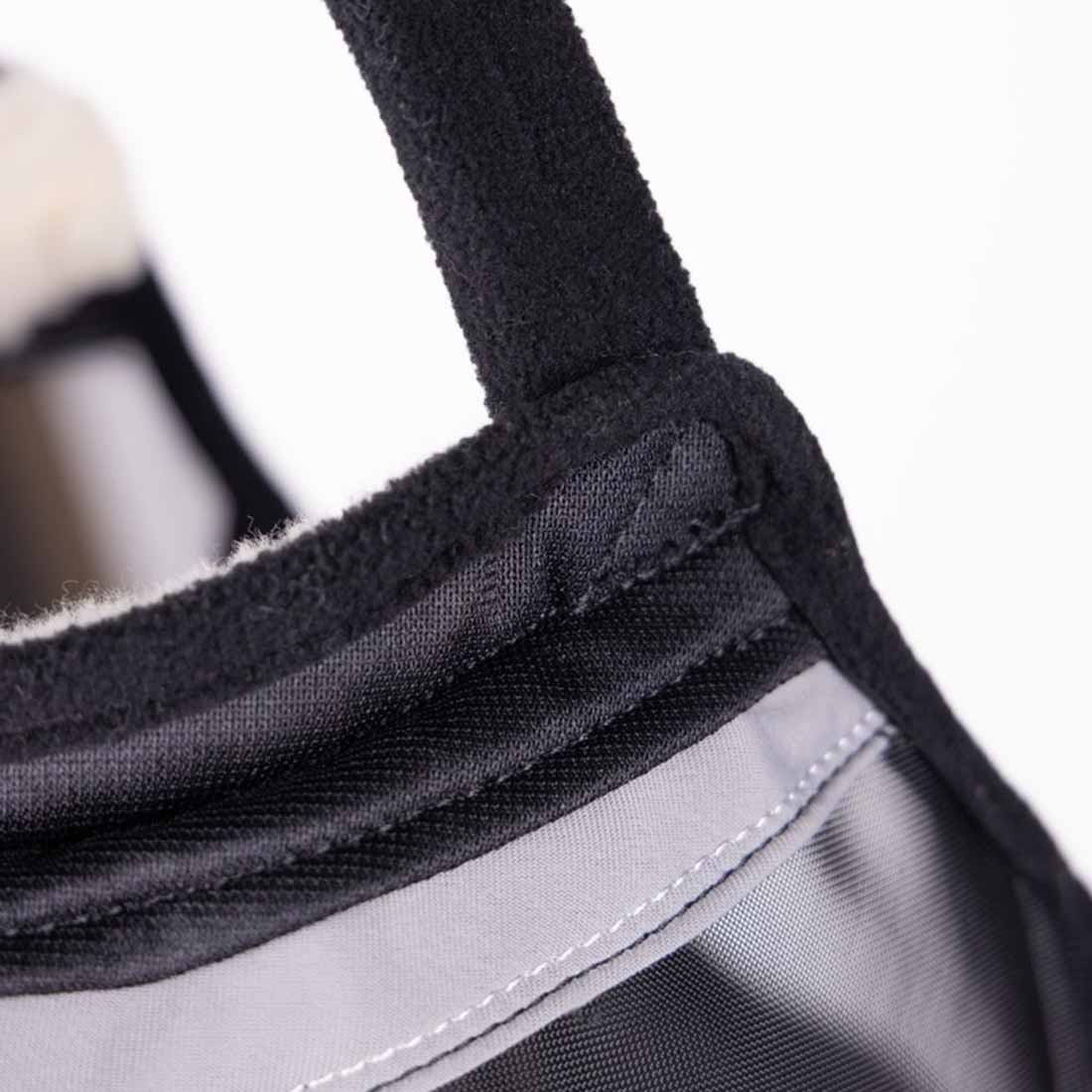 The Shires Fly Mask Fly Guard Pro Fine Mesh in black is crafted from fine mesh. It features ear holes and a nose fringe designed to effectively deter annoying flies and insects.