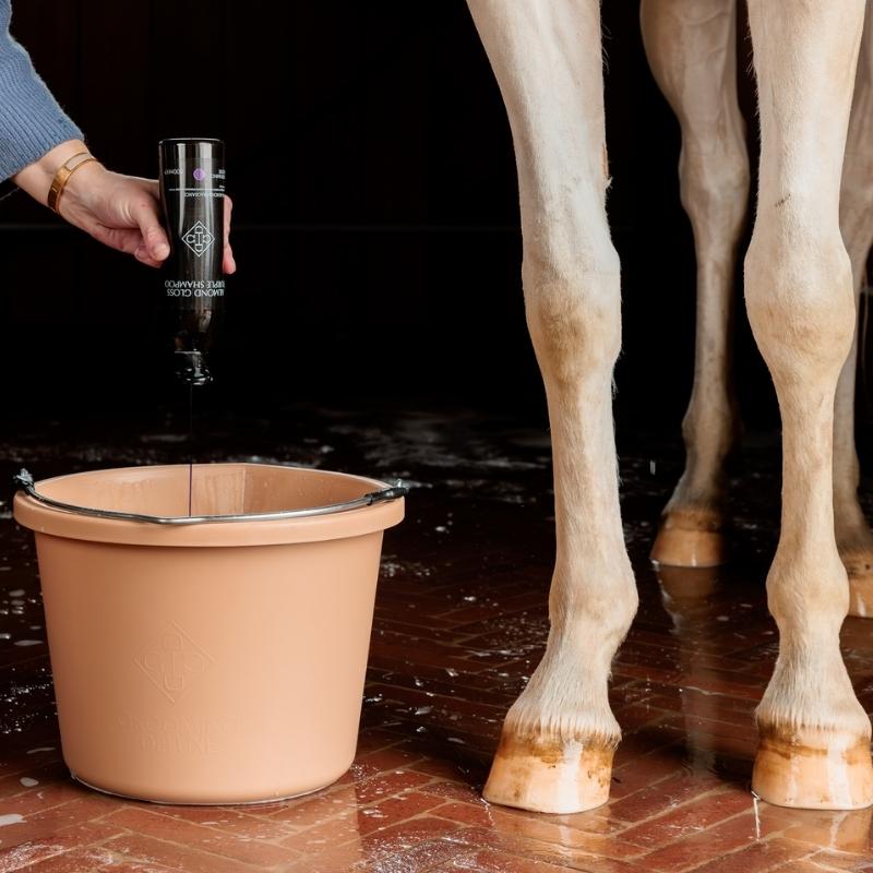 Thoroughly wet the horse’s coat with water. Apply the shampoo directly to the coat and massage into a rich lather. For stubborn stains, use the shampoo undiluted and apply directly to the affected areas. Rinse thoroughly, preferably with lukewarm water.