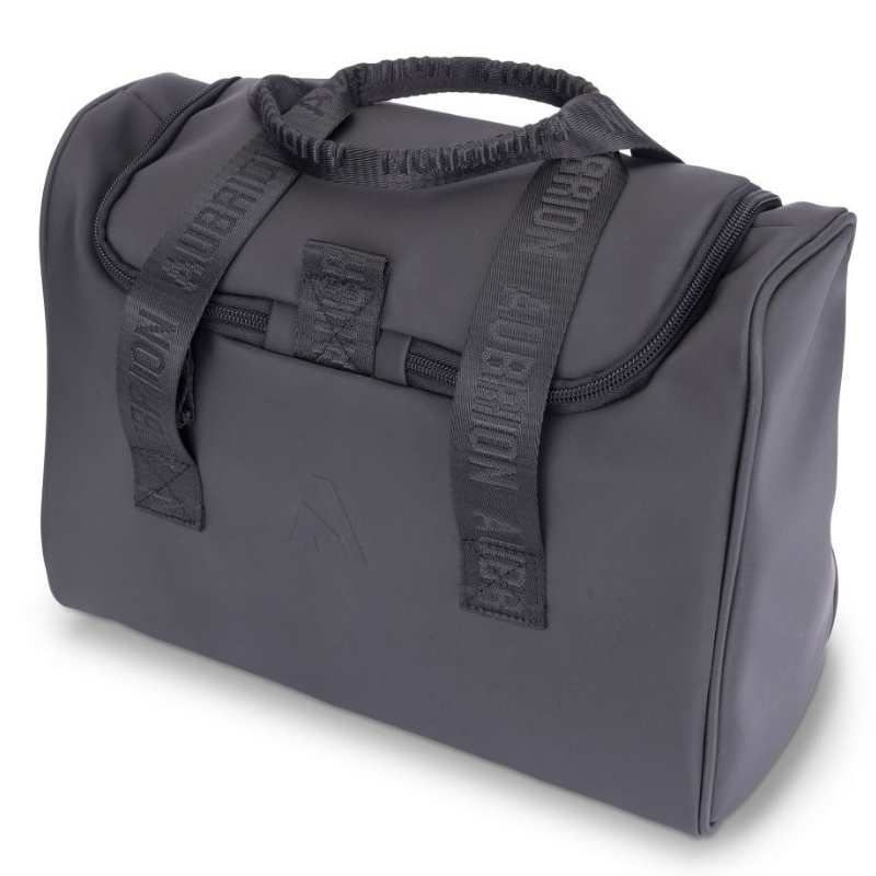 The Aubrion Grooming Bag in black is a practical solution for organizing and transporting your grooming products. It features an internal eight-part divider that is removable, offering flexibility for various needs. The outer fabric is easy to wipe clean, making maintenance simple. The design includes a smart signature weave and a matte logo for a sleek appearance.