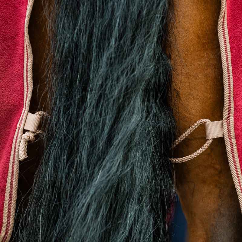 Designed with style in mind, the fleece rug comes in fashionable seasonal colors that can be matched with various accessories to complete your horse's look. It features two removable cross surcingles for a secure fit, a single front closure for easy use, and a fillet string tail cord for added stability.
