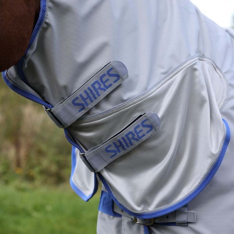 The Shires Tempest Original Rain & Fly Rug is ideal for changeable weather during fly season. This grey rug features a waterproof top section made from 600D ripstop material, protecting your horse's back from rain. The side panels are quick-drying and ultra-breathable, helping to keep your horse cool. It also includes a generous belly flap for increased insect protection, adjustable on both sides of the belly.