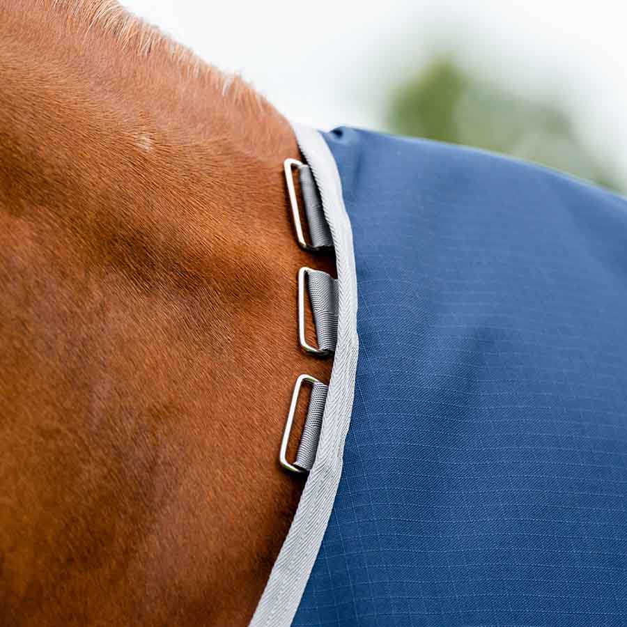 Amigo Ripstop 900 Plus 100g - High-Quality, Lined Turnout Rug with Neck Cover. Crafted from durable 900D Ripstop polyester, ensuring both a waterproof surface and excellent breathability, and lined with 100g fiber filling for a bit of extra warmth during transitional seasons.