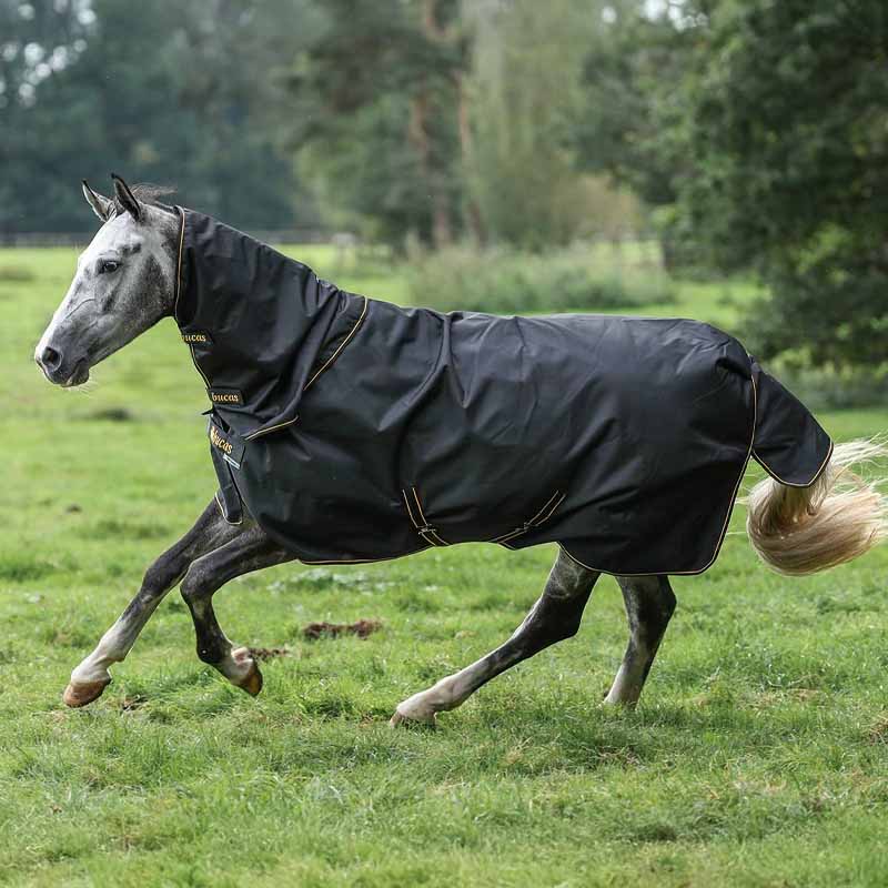 This rain rug with neck from Bucas is designed to keep your horse dry and comfortable in wet conditions. Featuring a breathable Dermo-care lining, it helps maintain coat condition and dries faster thanks to our Stay-dry technology. The durable Ripstop outer material, rated at 1200 Denier, provides extra durability, while the waterproofing of over 5000 mm and breathability of over 3000 g/24h/m² ensure your horse is protected from rain and moisture. Shoulder darts give your horse extra room to move, and the practical T-bar and Snap-lock magnetic front fastening make it easy to put on and take off. With 50g Thermobonded polyester wadding insulation, it keeps your horse warm on chilly days. The neck is included, and the rug is machine washable at 30°.