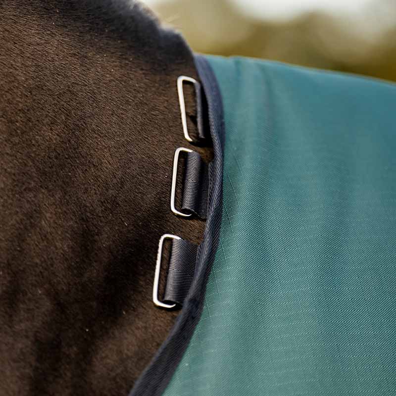 The straight front closure makes it easy to put on and take off, and two crossed surcingles along with the tail strap ensure it stays securely in place, even during movement. It also has attachment points for both a neck cover and the Horseware liner system, offering flexibility in any weather. Neck cover and liner sold separately.