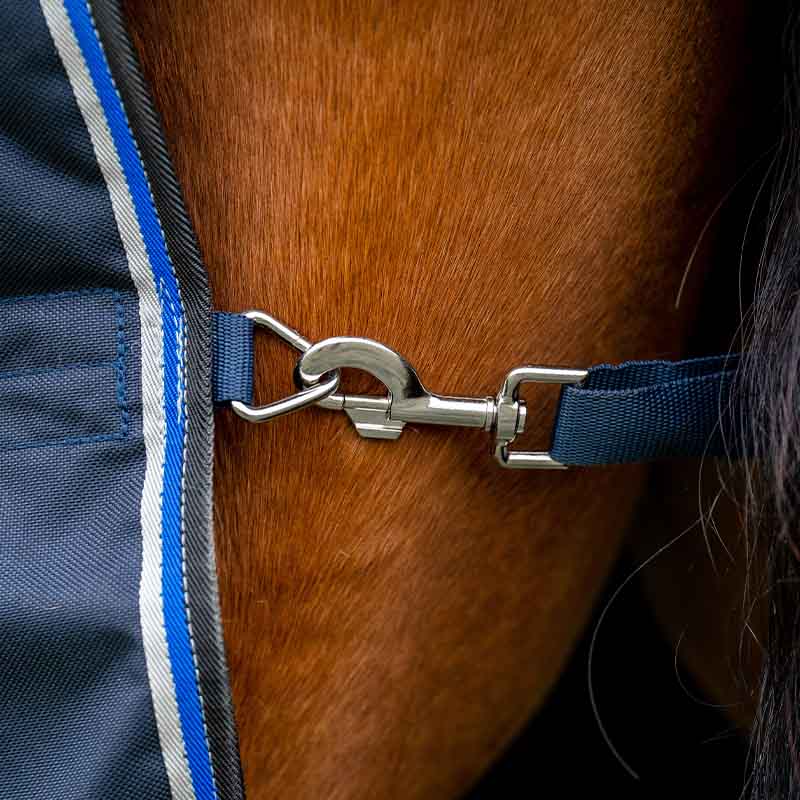 Finally, the blanket is equipped with attachments for both a neck cover and liner, allowing you to easily adapt the blanket if your horse needs extra protection. Neck cover and liner are sold separately.