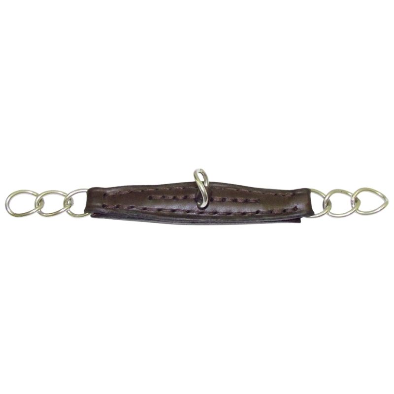 The Kind Chain Leather Brown from Bombers is an alternative to the classic curb chain, designed for a softer effect. It features a leather plate in the center with chain ends, providing a more even and gentle pressure distribution under the horse’s jaw. This design makes it ideal for riders who find a standard metal chain too harsh, while still maintaining its function of stabilizing the bit and regulating when the leverage effect is activated.