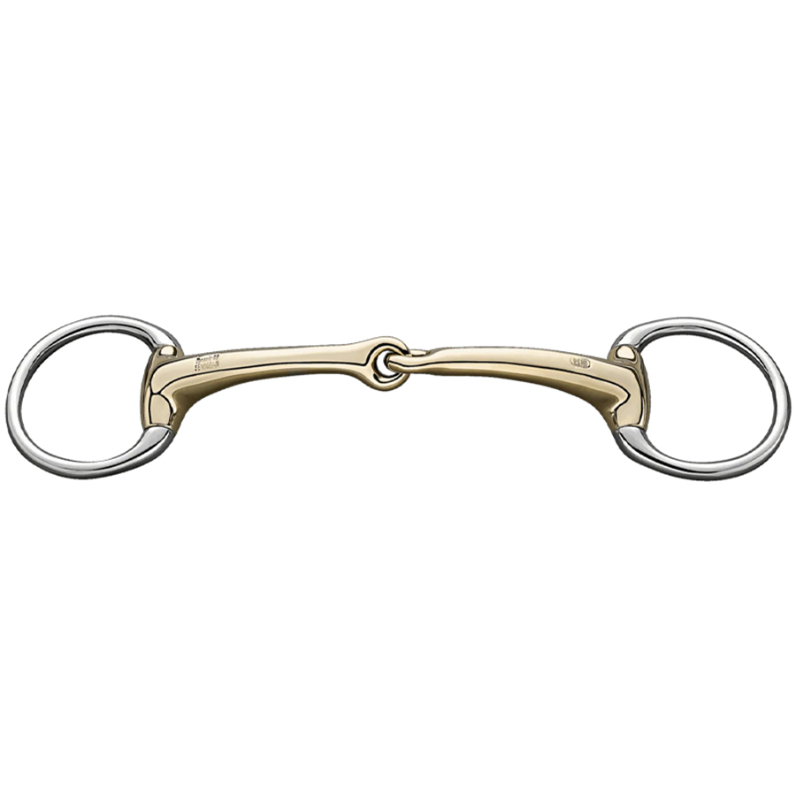 Eggbutt Single Jointed Dynamic RS Sensogan Ø55 mm from Sprenger is a single jointed bit with fixed rings and an ergonomically designed Sensogan mouthpiece. The centre joint is angled 45° forward, which is a characteristic feature of the Dynamic RS series and contributes to more even pressure distribution across the tongue. The construction is designed to lie anatomically correctly between the tongue and the palate.