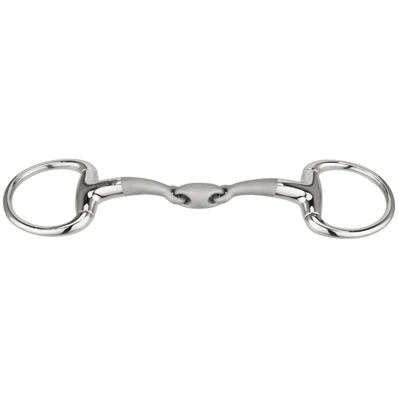 The Double Jointed Satinox Eggbutt Ø55 mm from Sprenger is a double jointed bit with fixed rings and an ergonomically designed stainless steel mouthpiece. The design allows for even pressure distribution on the tongue and is shaped to sit anatomically correctly between the tongue and the palate. The bit provides direct and precise action.