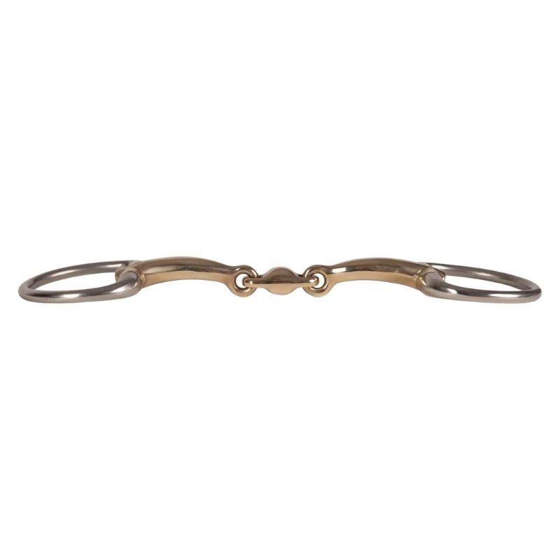 The VELARI Eggbutt Double Jointed Sweet Copper 16mm bit offers even pressure distribution, promoting relaxation in sensitive horses. Its sweet copper mouthpiece has a naturally sweet taste that stimulates saliva production, helping the horse remain soft and accepting in contact. The fixed rings provide stability and consistent rein aids, reducing lateral movement and the risk of pinching. This design is particularly suitable for horses with a low palate and those sensitive to pressure from single jointed bits. The bit is 16 mm thick, and it's recommended to rinse it in warm water after use and dry thoroughly. Store in a dry place and regularly check for wear.