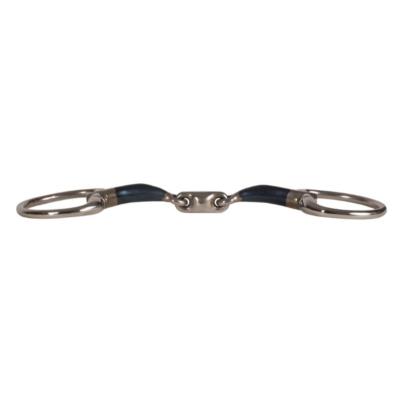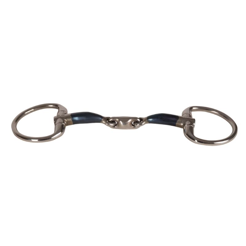 The VELARI Eggbutt Double Jointed bit is designed to provide even pressure distribution and stable contact in the horse's mouth. The double-jointed mouthpiece reduces the nutcracker effect and distributes pressure evenly across the tongue and bars, resulting in a soft and responsive feel. Made from sweet iron, the bit naturally oxidizes to encourage salivation, helping the horse remain soft and accepting of the contact. The fixed eggbutt rings offer stability, reduce lateral movement and pinching risk, and provide reliable rein aids. This bit is particularly suitable for horses with a lower palate and those sensitive to pressure from single-jointed bits. Available in 14 mm thickness.