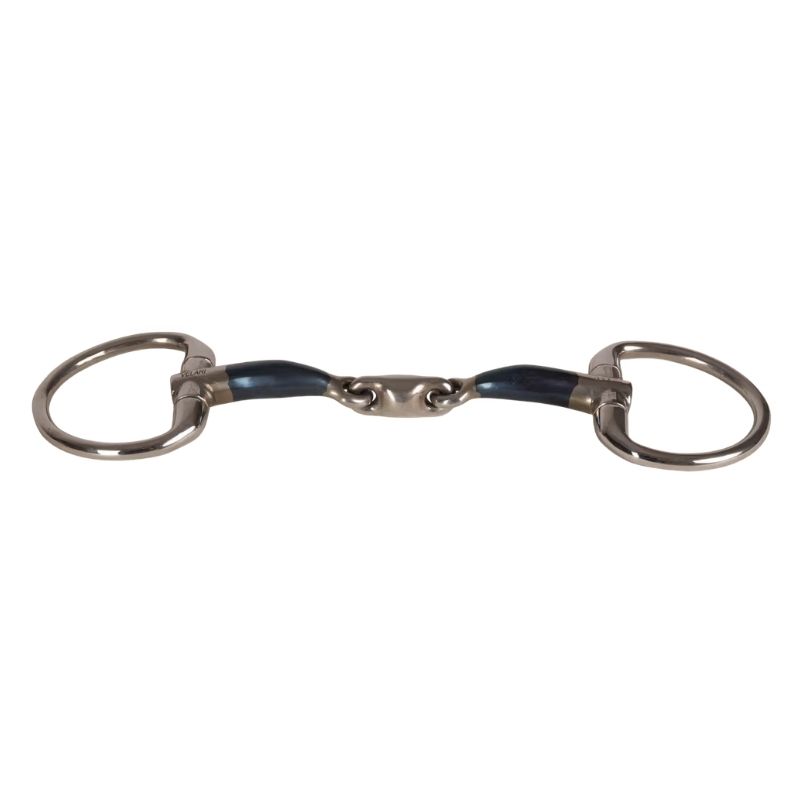 The VELARI Eggbutt Double Jointed bit is crafted for even pressure distribution and stable contact. Featuring a sweet iron mouthpiece that naturally oxidizes, it encourages salivation, helping the horse remain soft and accepting. The fixed rings reduce lateral movement and pinching risk, providing reliable rein aids. This design is particularly suitable for horses with a lower palate and those sensitive to pressure from single jointed bits. Rinse with warm water after use and dry thoroughly. Store dry and regularly check for wear.