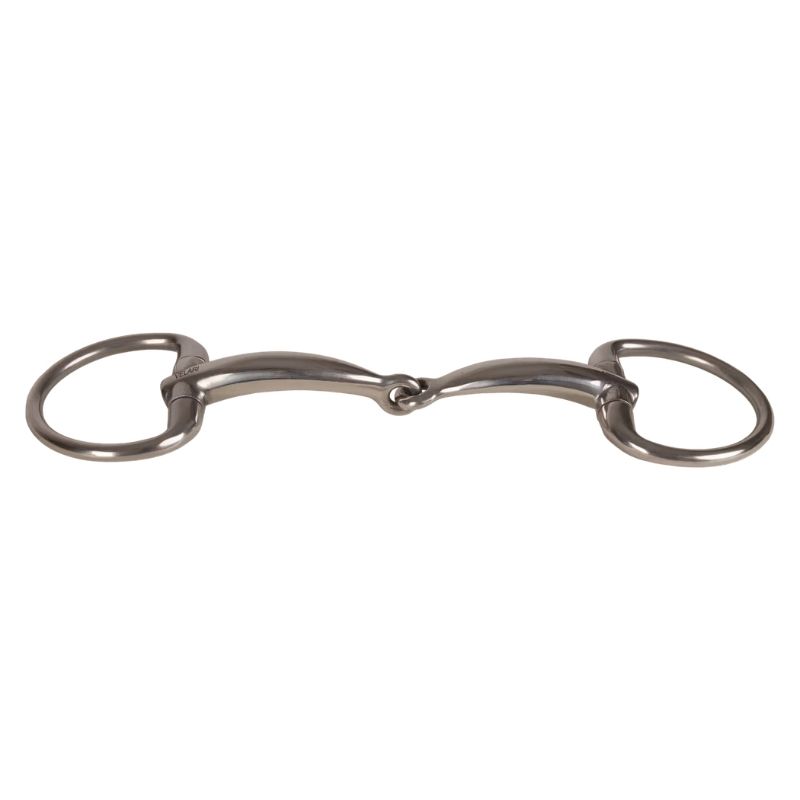 The VELARI Eggbutt Double Jointed bit is crafted from stainless steel, providing clear and direct action. With fixed rings for enhanced stability and even rein aids, it's particularly suited for horses with a higher palate or those preferring a defined impact. The double-jointed mouthpiece forms a V-shape when pressure is applied, distributing pressure evenly across the tongue and bars. Stainless steel offers a neutral and stable contact without affecting taste, ideal for horses that enjoy simple and stable contact.