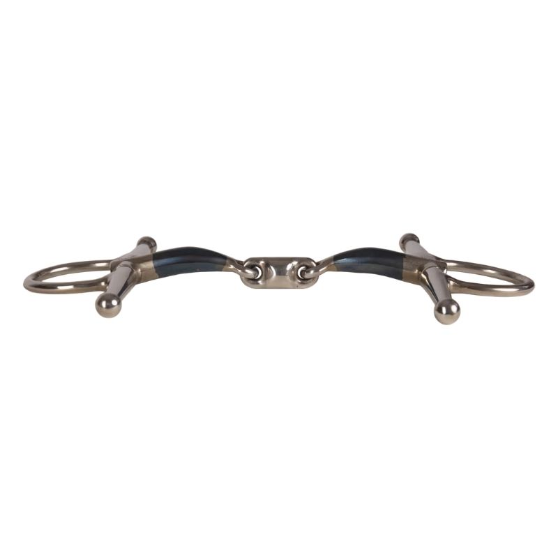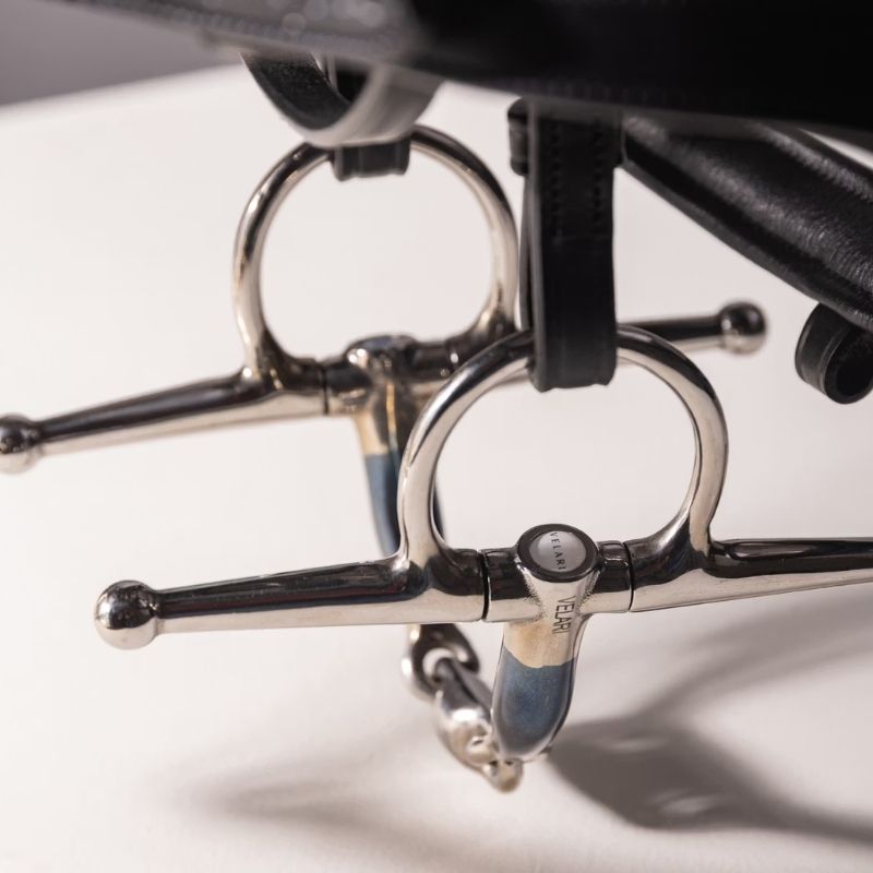 The VELARI Full Cheek Bit is a double jointed bit designed for even pressure distribution and stability. Made with sweet iron, it encourages salivation and relaxation in the horse. The full cheek arms provide clear lateral support, making it particularly suitable for younger or less experienced horses. Its double jointed construction reduces the nutcracker effect and distributes pressure evenly across the tongue and bars, offering a soft and responsive feel. This bit is ideal for horses with a lower palate and those sensitive to pressure from single jointed bits. The sweet iron mouthpiece naturally oxidizes, developing a patina that can enhance acceptance. Rinse with warm water after use and dry thoroughly. Store dry and regularly check for wear.
