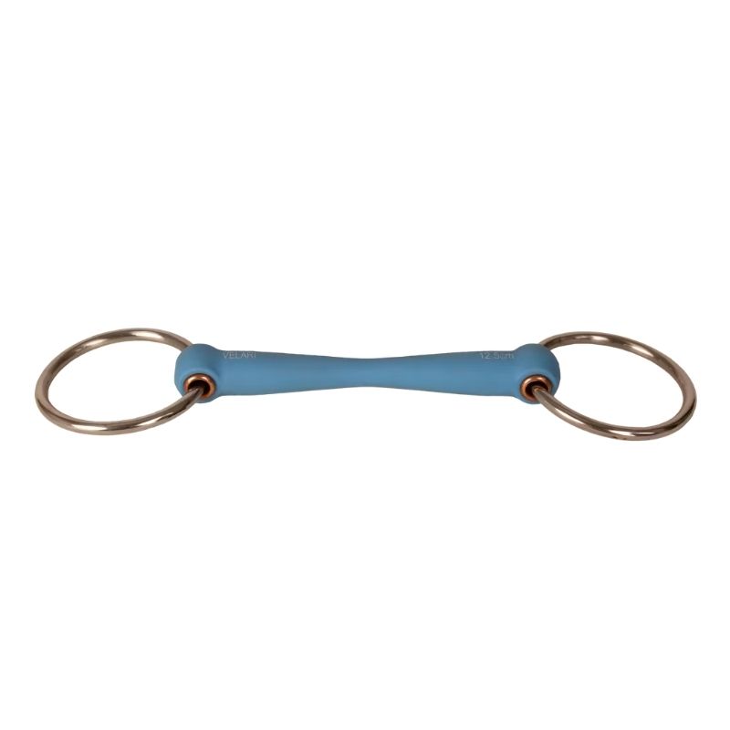 The VELARI Loose Ring Flex Snaffle in Medium 20mm provides a stable and balanced contact for horses needing a clear yet comfortable feel. This bit is slightly firmer than the Soft version, offering more defined communication without compromising comfort. Made from a non-toxic synthetic material with medium hardness, it provides clearer feedback than the softer variant while maintaining a smooth surface. The flexible core allows the mouthpiece to follow the horse's natural jaw movements, promoting active chewing and relaxation without feeling unstable.