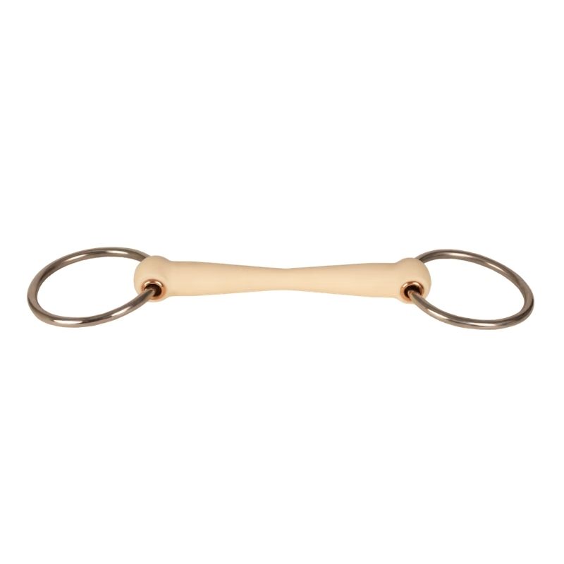 The VELARI Loose Ring Flex Snaffle Soft 20mm is crafted for horses needing a softer and more flexible mouthpiece. Made from a soft, non-toxic synthetic material, it is safe for daily use. The smooth surface protects sensitive mouth tissues, while the flexible core allows the bit to follow the horse's natural movements. This snaffle is particularly suitable for horses with sensitive mouths or young horses learning to accept the bit. The 20mm thickness ensures even pressure distribution, being gentle on sensitive bars and tongues. Loose rings provide increased mobility and encourage light chewing activity, helping the horse remain soft and attentive in the hand. Rinse with warm water after use, dry thoroughly, and store in a dry place. Regularly check that the surface is smooth.