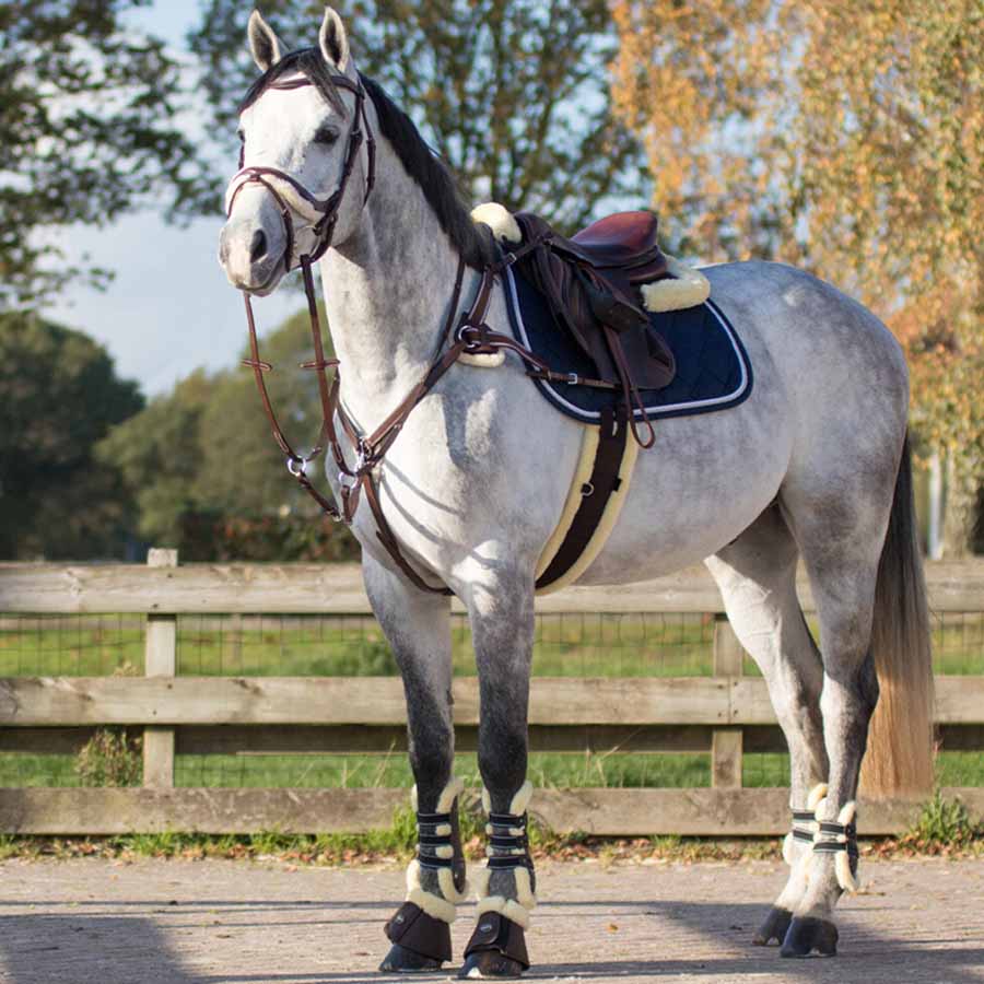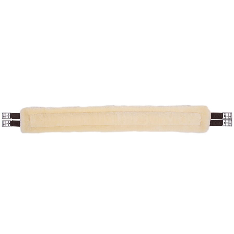 Brown all purpose girth with elastic ends. The girth is also lined with soft synthetic fur to reduce the risk of chafing and irritation, and features stainless steel roller buckles for easier tightening. Three rings at the front allow for attachment of support reins.