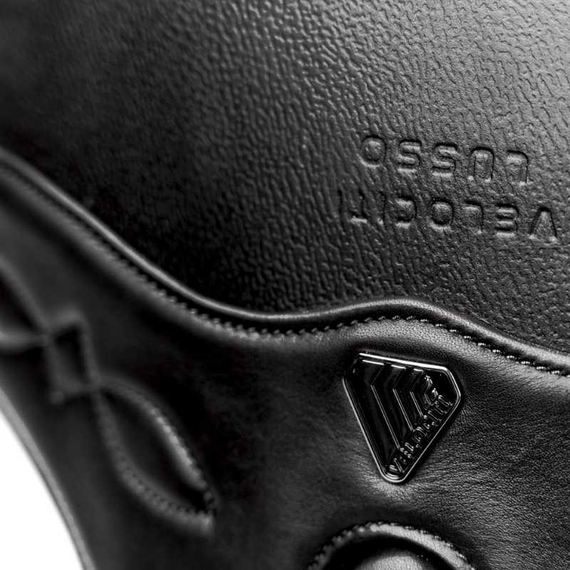 The Velociti Lusso Pro Series Luxe Stud Guard is crafted for superior comfort and performance. Its anatomical design protects the horse's underside during jumping, ensuring an ergonomic and natural fit. Featuring a soft calfskin leather lining, pressure-relieving padding, and rounded edges, this stud guard enhances freedom of movement and reduces the risk of chafing. The color is a sleek black.