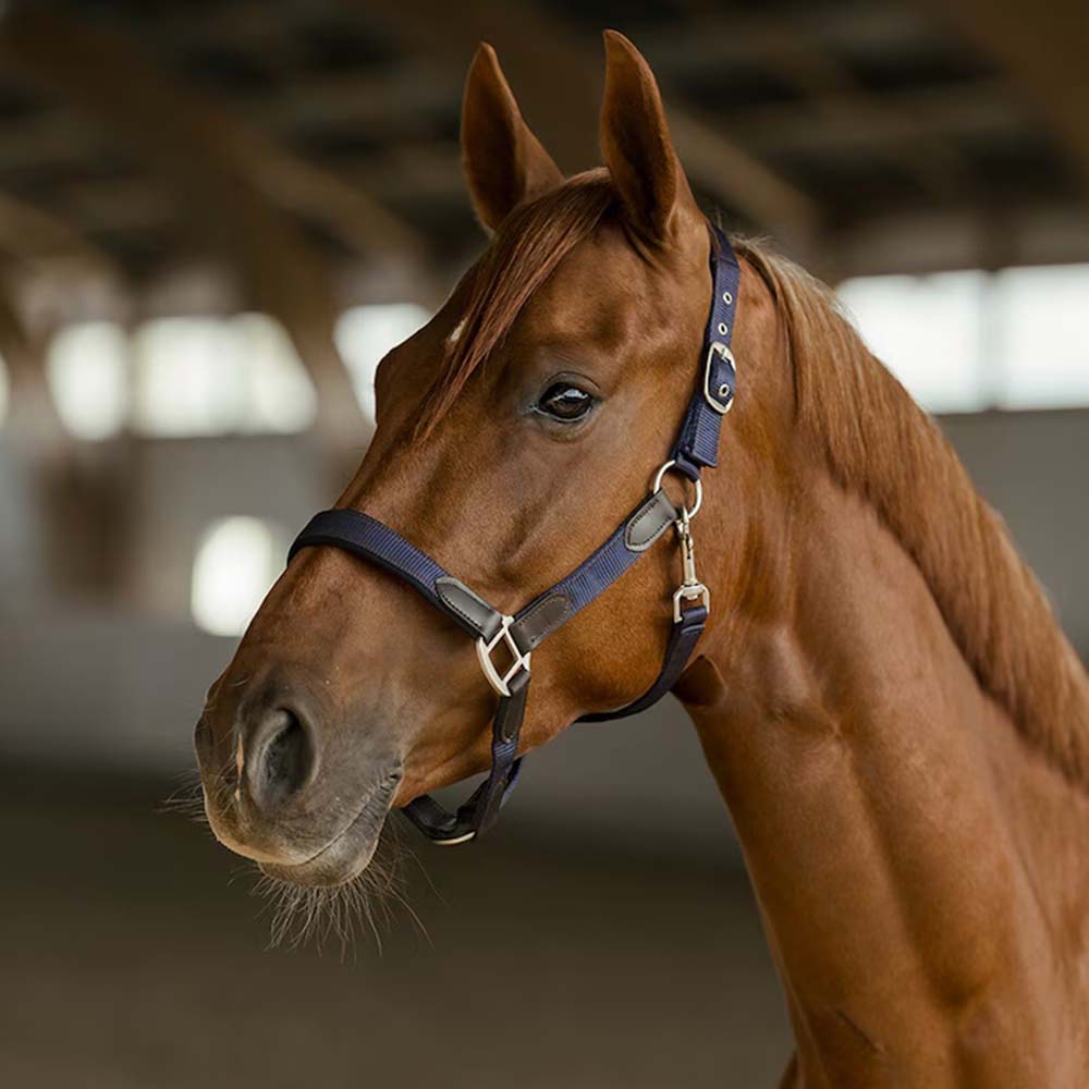 The Hansbo Sport HS Edit Halter in navy blue is an elegant and well-crafted textile halter featuring soft leather details of the highest quality. Designed for optimal comfort, it includes a padded noseband and headpiece. The halter is equipped with nickel-free metal fittings, making it gentle on the horse's skin and reducing the risk of allergic reactions.