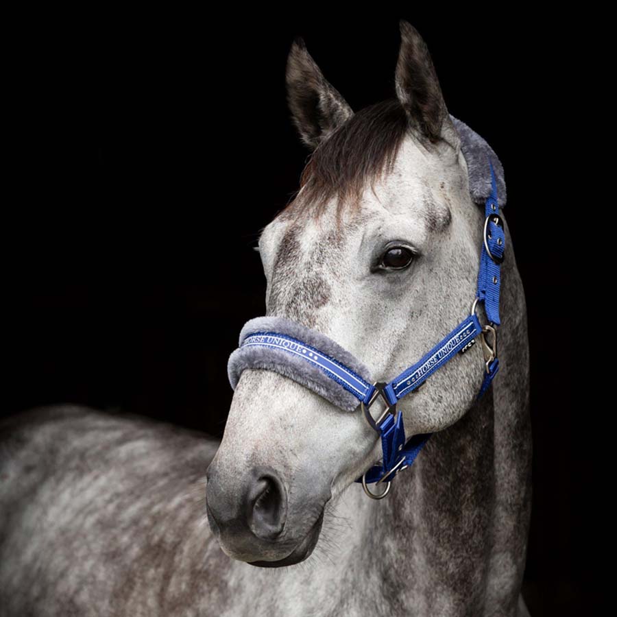 A comfortable headcollar in durable polypropylene, with soft fleece covering both the horse's nose and neck. The nose and neck straps are adjustable to find the best fit. Buckles and details are in an elegant matte silver. Both cheekpieces and nose are also adorned with Horse Unique embroidery and decorative stones. Article nr: