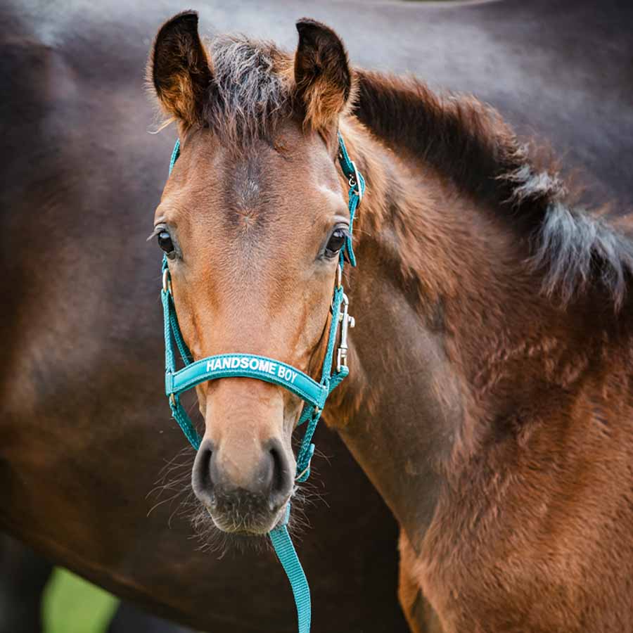 The adorable Malva HG Foal Halter from Horse Guard is crafted from durable nylon material. It features a padded head strap and noseband for optimal comfort. Both the head strap and noseband are adjustable, making it easy to customize the fit. As a final touch, the halter is detailed with the text 'Handsome Boy' across the nose and comes with a practical strap.