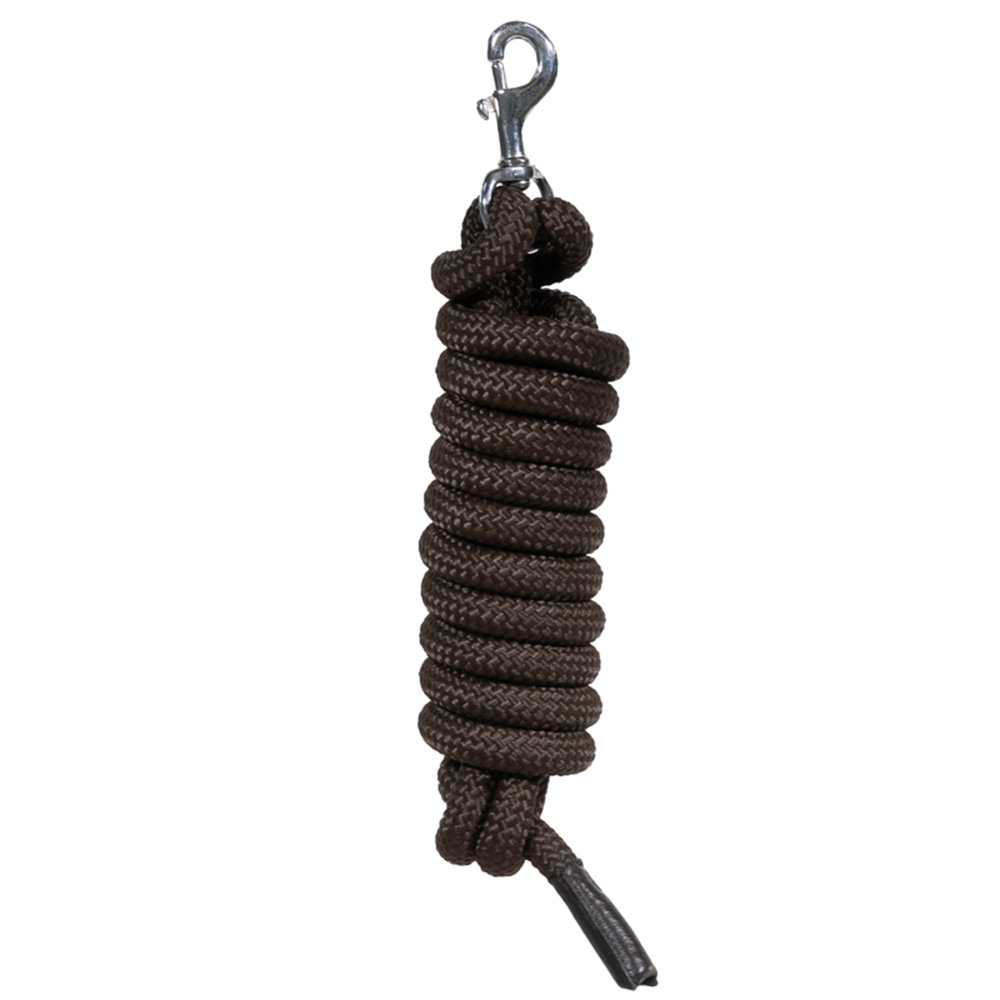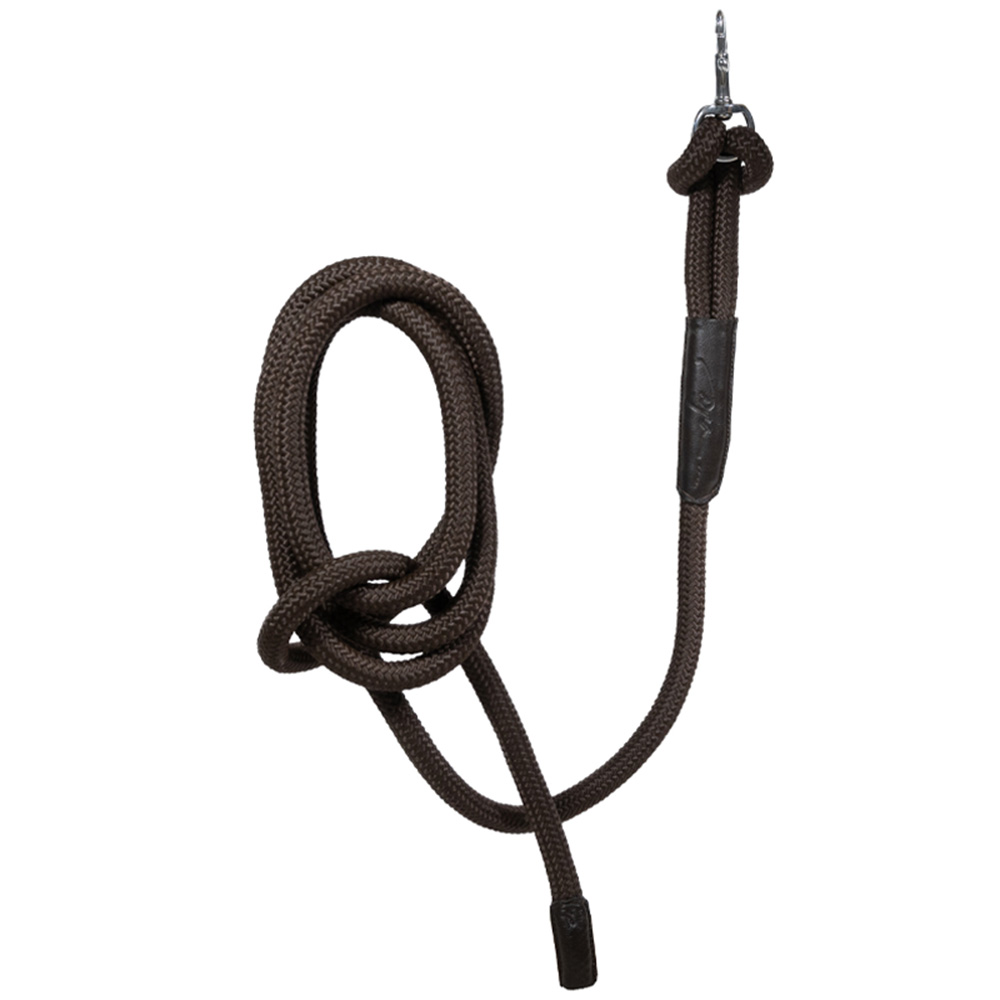 This Training Lead with Removable Snap gives you the freedom to diversify your training. Measuring 3.7 meters in length and featuring a 20mm diameter, it provides optimal dimensions for comfortable handling and effective control during training. The lead is perfect for expanding the working distance on the circle while ensuring continuous contact with your horse. It is ideal for versatile training exercises and can be confidently used for daily sessions. Made from durable rope, the lead is adorned with two leather pieces, each embellished with the dy'on logo. The leather parts are made from buffalo leather, ensuring the lead's durability.