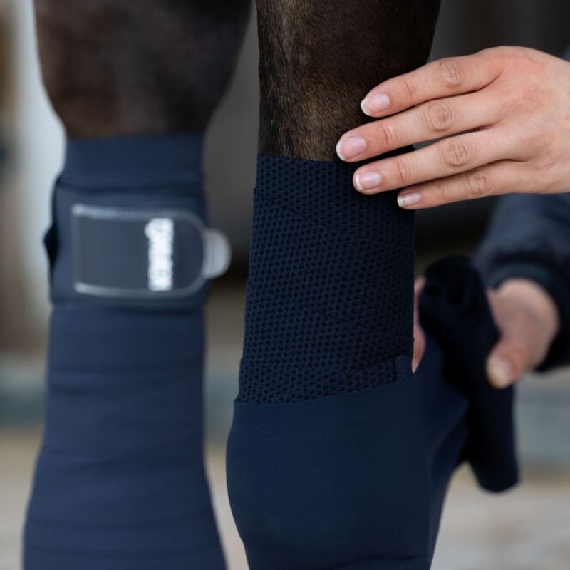 The ESKADRON Softshell Mesh Bandages feature a combination of softshell and mesh for excellent breathability. These navy blue bandages come in a set of four and are packed in a convenient zippered bag. Each bandage measures 250 cm x 10.5 cm, ensuring a good fit and coverage.