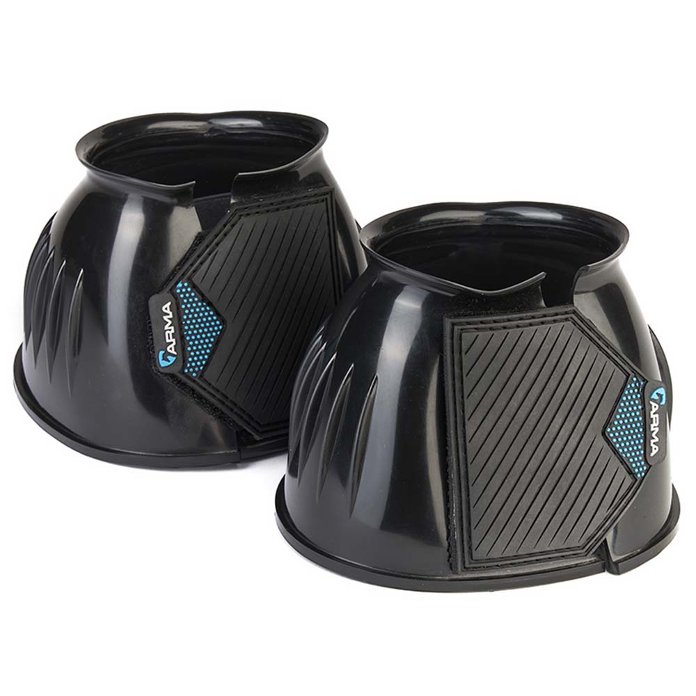 The ARMA Bell Boots in black are made from a very flexible and soft PVC material, making them both durable and easy to handle. The practical Velcro closure ensures a secure and adjustable fit around the horse's hooves, providing extra protection during training and competition. These boots are perfect for preventing injuries to the hoof and are suitable for both everyday use and more intensive activities. With their simple design, they are easy to put on and take off, saving time in the stable.