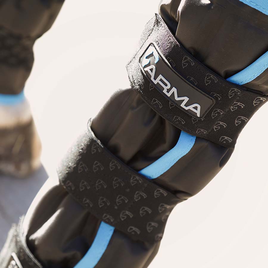 The SubZero Cooling Bandages from ARMA are practical wraps designed to cool your horse's legs after intense exercise. These bandages are easy to use; simply place them in the freezer to activate the gel, and use them straight from the freezer or store them in a cooler as needed. They fasten securely with elastic Velcro, making them convenient to put on and take off. Suitable for use on all parts of your horse's front or hind legs, these bandages offer versatility for various situations. Sold in pairs. Article nr: