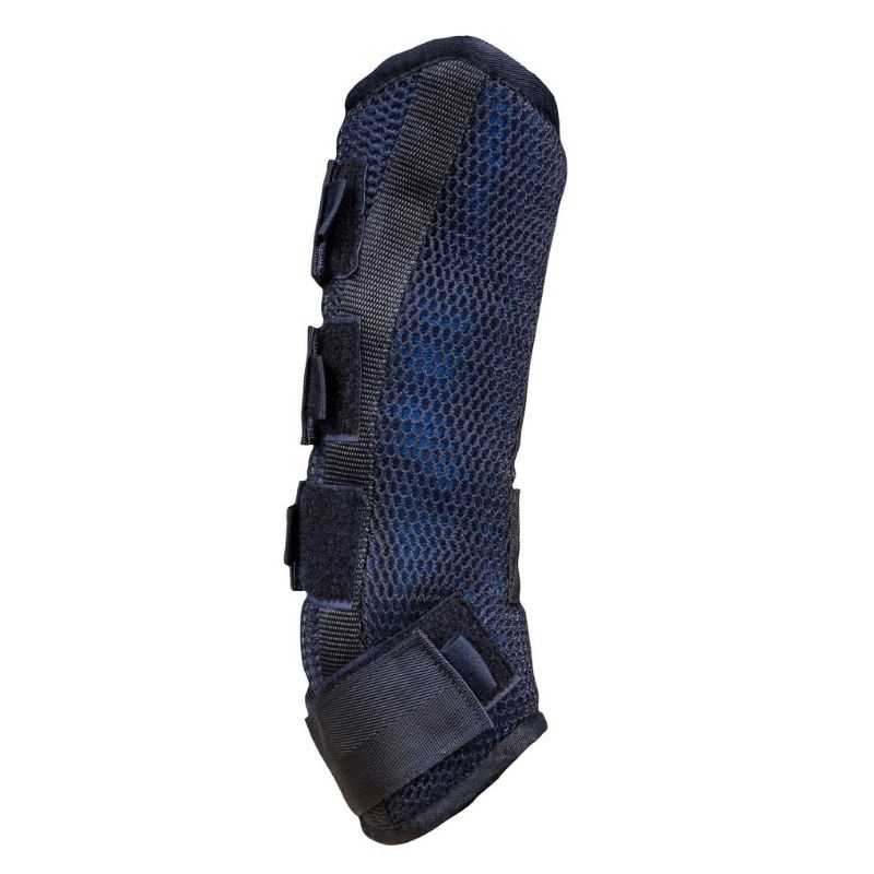 Back On Track's Quick Wraps Cool on Track 2.0 is an updated version of stable boots featuring streamlined padding for improved performance. These blue Quick Wraps conform to the horse's legs, providing a cooling effect on the tendons, crucial for lowering temperature after intense work. Cooling therapy can reduce the risk of issues from overheated tissues, as well as decrease inflammation, swelling, and pain. They are designed in a classic style and secured with four wide Velcro straps. The outer material is a 3D mesh that allows effective water evaporation and maintains its shape when wet. Use them for 15 minutes and soak in cold water for an additional 15 minutes of cooling.