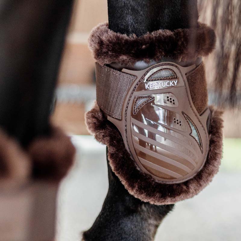 The Kentucky Vegan Sheepskin Fetlock Boots Young are designed to provide both comfort and protection for your horse. They are made from a strong TPU shell with multiple ventilation holes and a larger triangle mesh for optimal ventilation and cooling. The improved cut allows for maximum freedom of movement, which is important for young horses during training and competition. The vegan sheepskin lining adds extra comfort and breathability.