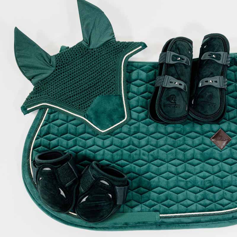 The Fetlock Boots Young Velvet in dark green are the perfect choice for velvet lovers who want to provide their horses with the best leg protection. These hind boots are not only attractive but also made from high-quality materials. The strong EVA shell features multiple ventilation holes for optimal airflow and cooling, preventing overheating of the tendons.