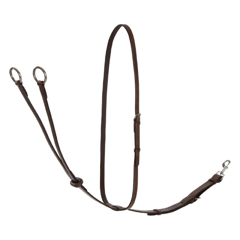 The Lippo Selected Martingale is crafted from soft brown leather with matching stitching for a sleek look. It features silver buckles and an adjustable rubber stopper for added customization. Additionally, it includes a removable snap hook at the girth attachment, making it easy to use and adjust.