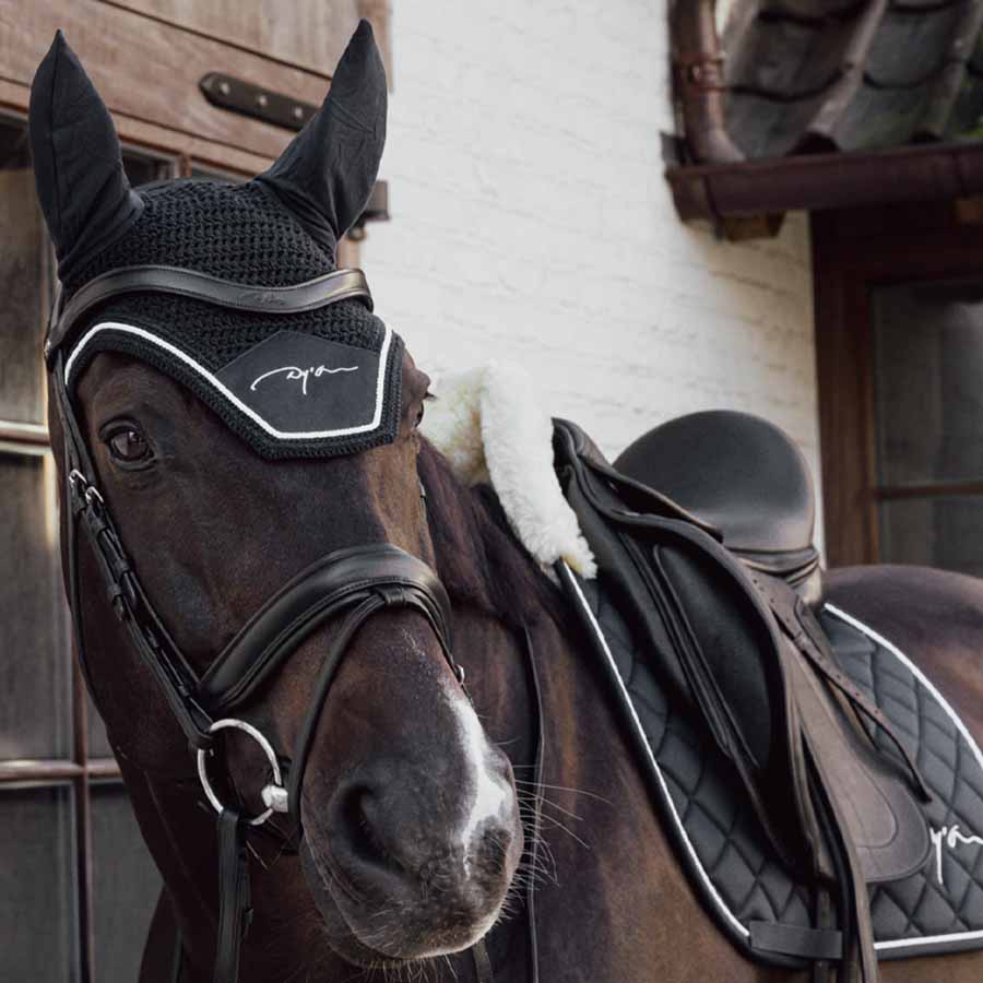 The Skin Friendly dressage saddle pad is designed to provide a soft and comfortable experience for your horse. The vegan sheepskin on the inside and at the wither offers exceptional comfort, making it perfect for horses with sensitive skin. The saddle pad features the Dy'on logo on each side and has no saddle straps, giving it a clean and simple look. Instead, there is a nylon strap for the girth, making it easy to attach. It is also ergonomically designed to cushion shocks between the saddle and the horse, while remaining highly breathable. This makes the saddle pad ideal for daily use. For care, it is machine washable at 30 degrees, but it is recommended to wash it as infrequently as possible to maintain quality. It dries best when placed outside on a sunny day.