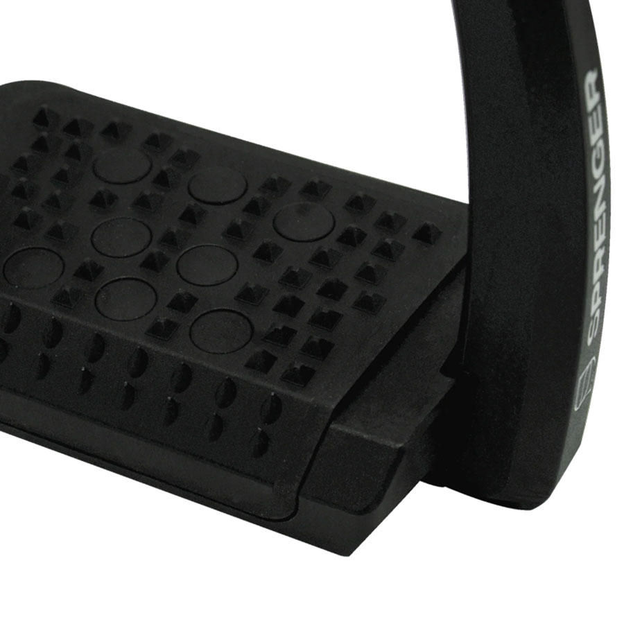 Sprenger Aero are high-quality safety stirrups, in black and silver, for riders looking for both security and stability – without compromising on comfort. The stirrups offer solid support, and thanks to a flexible side arm that opens in multiple directions – forward, backward, upward, or sideways – they also reduce the risk of your foot getting stuck in the event of a fall.