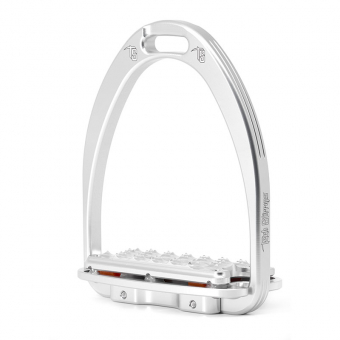 The classic stirrups Siena Plus, in this silver version from Tech Stirrup, are made of high-quality metal and have one of the widest footplates on the market. Unlike the Siena model, the Siena Plus features built-in shock absorption.