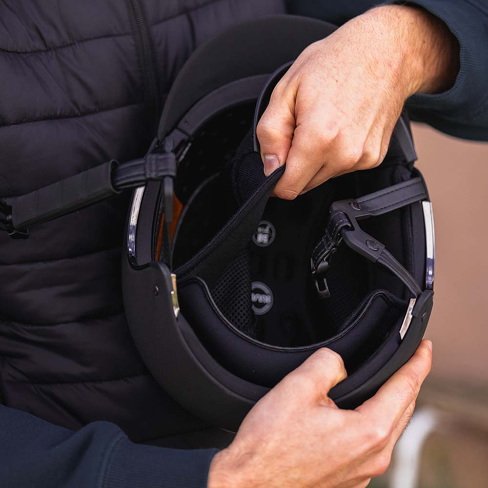 The inner pad is made in Italy by REDA, an Italian expert in merino wool production. The soft and full padding gently adapts to the shape of the head, providing support and even pressure distribution.